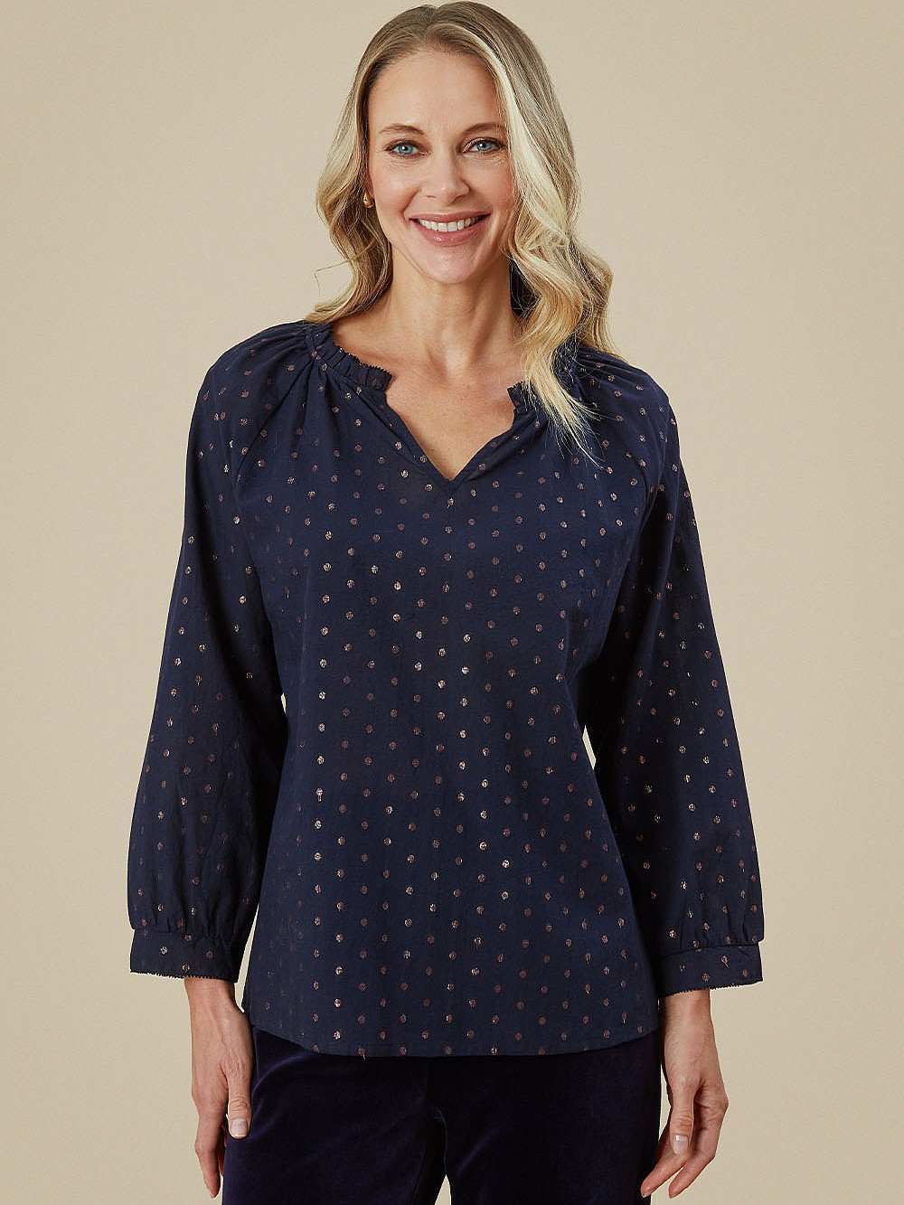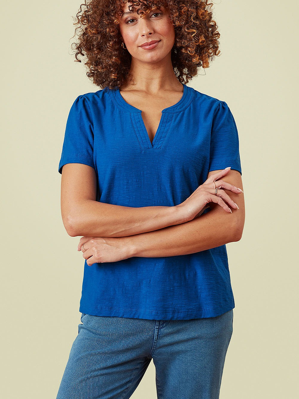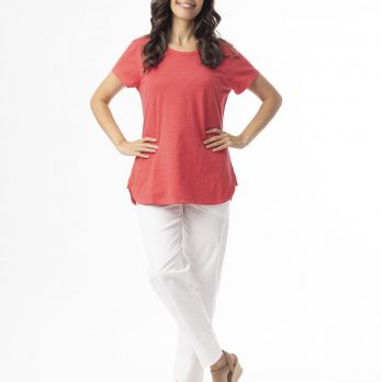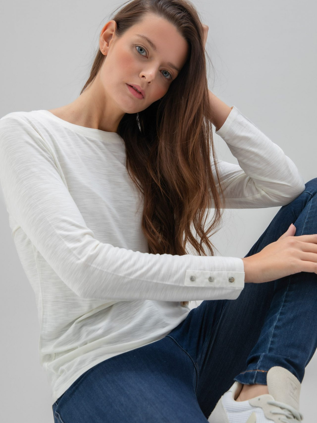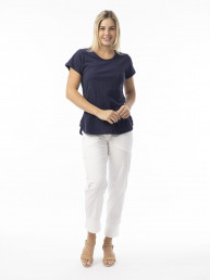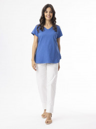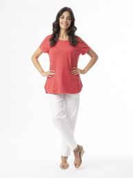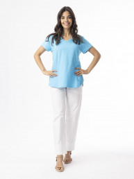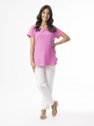 Marble 8147 Round neck relaxed fit top with shirt tail and exaggerated cuff