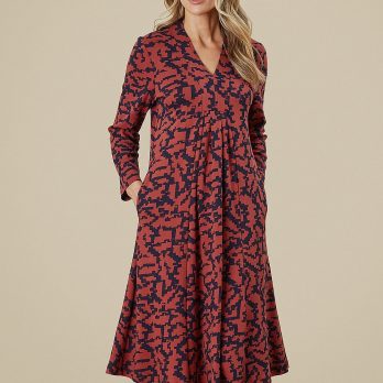 Adini Maiya dress – Abstract jacquard print neutral and black