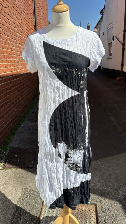 Adini Maiya dress – Abstract jacquard print neutral and black