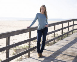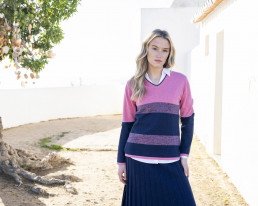 Marble 7807 Relaxed fit sweater with two colour knitted stripes
