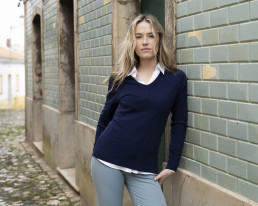 Marble 7804 Classic sweater with knitted horizontal stripe