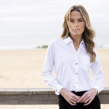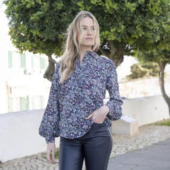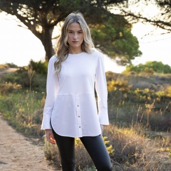 Marble 8147 Round neck relaxed fit top with shirt tail and exaggerated cuff