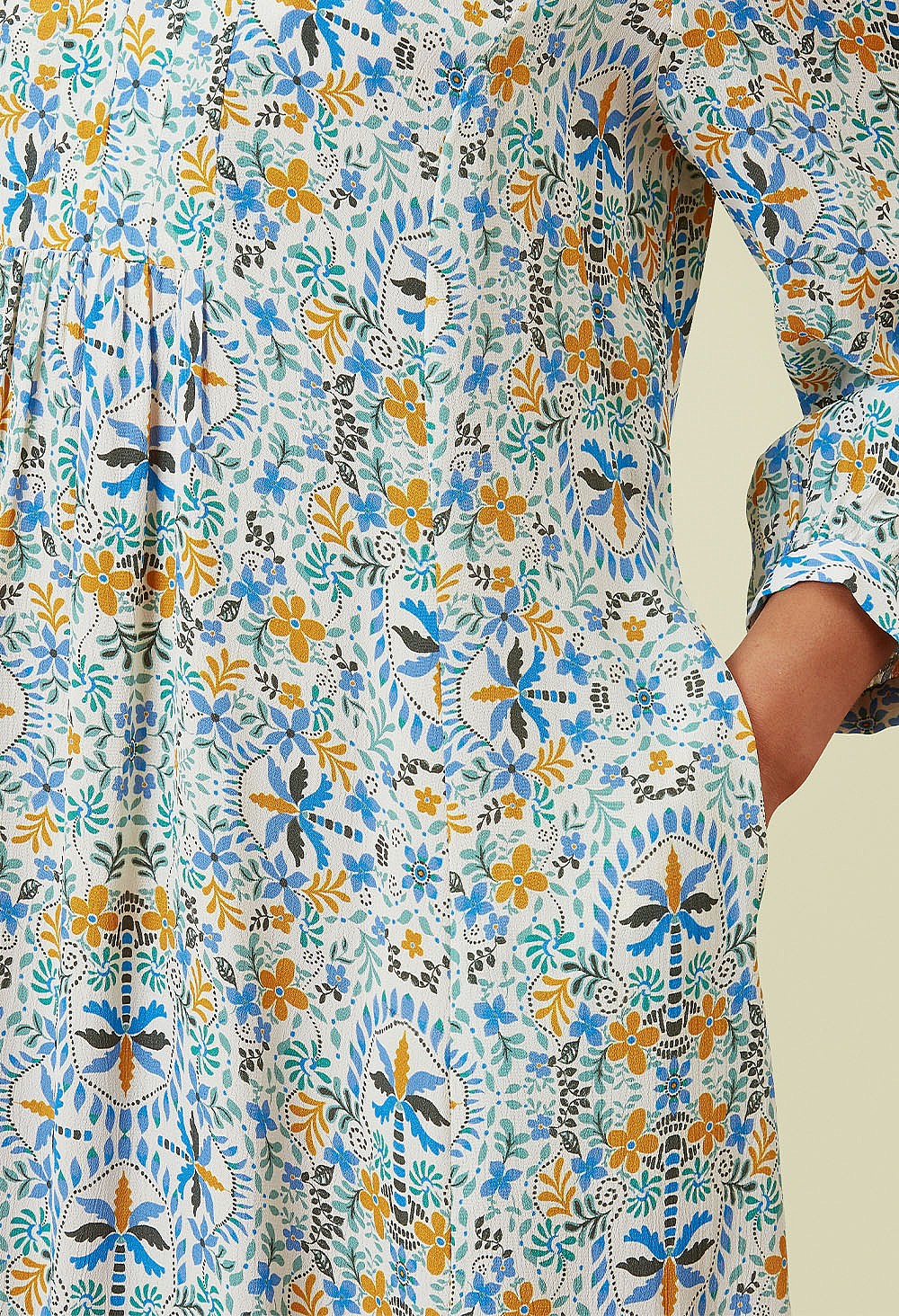 • Decorative pleating along yoke