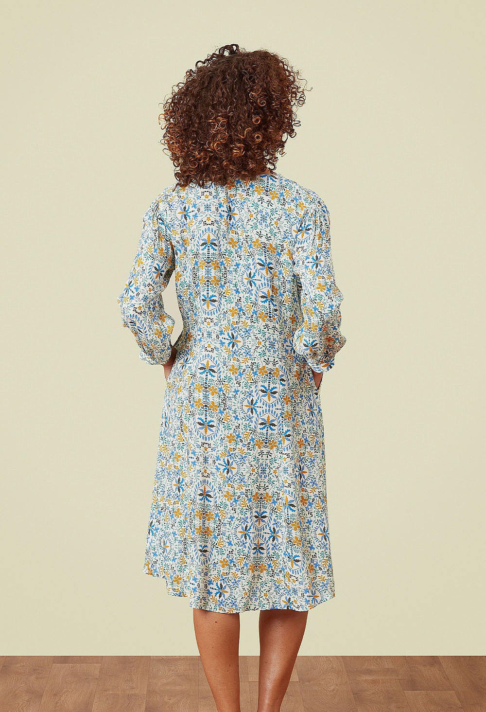 What a lovely free and easy dress this is to wear!  Very relaxed but elegant too.  It is so breezy and drapey and it is as cool as it looks, made from lightweight viscose crepe – perfect for travelling.