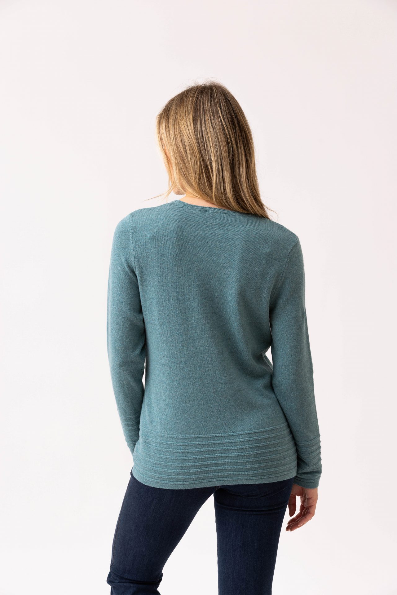 Marble 6377 100% cotton round neck fitted sweater with long sleeve and raised knit detail