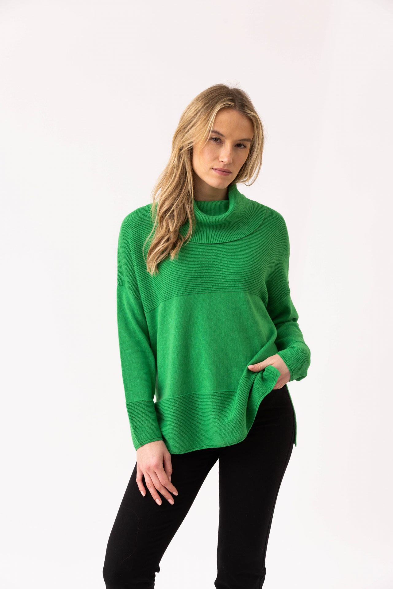 Super soft 100% cotton, oversized fit, cowl neck sweater with texture knit pattern