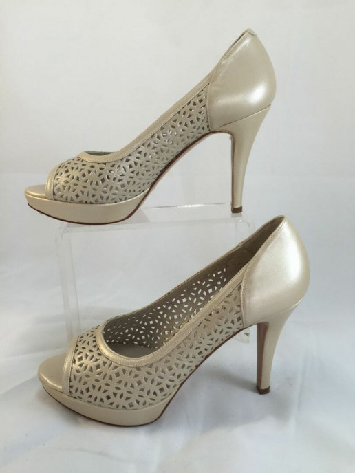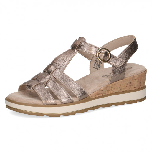 Caprice 28709 Taupe metallic wedge with velcro ankle strap