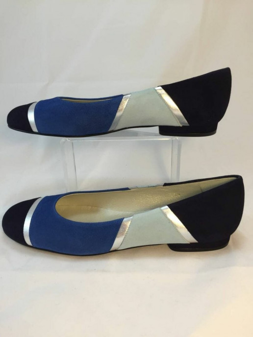 Cefalu Curba navy, pale and royal blue and silver suede leather shoe