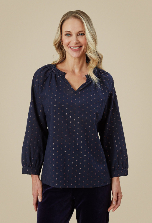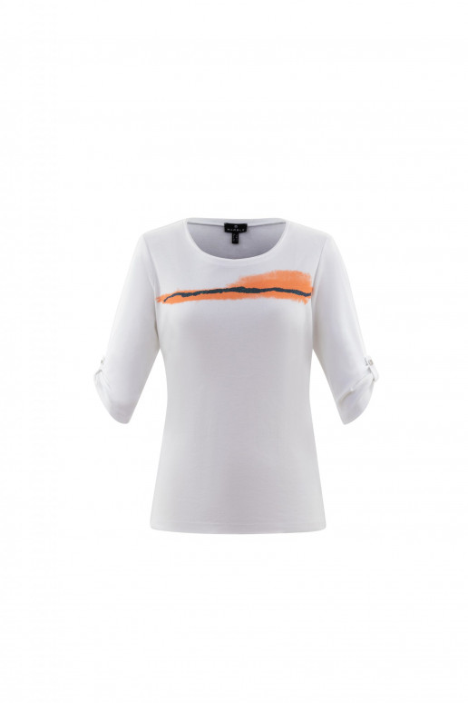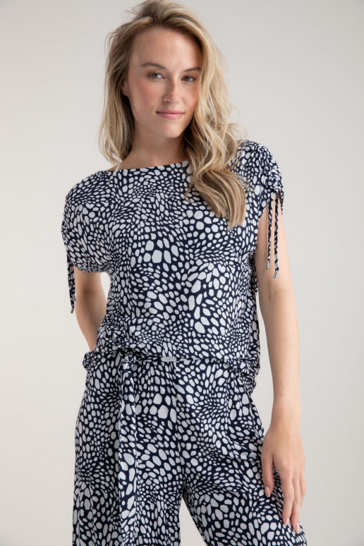 Marble 8147 Round neck relaxed fit top with shirt tail and exaggerated cuff