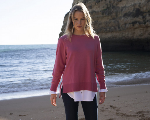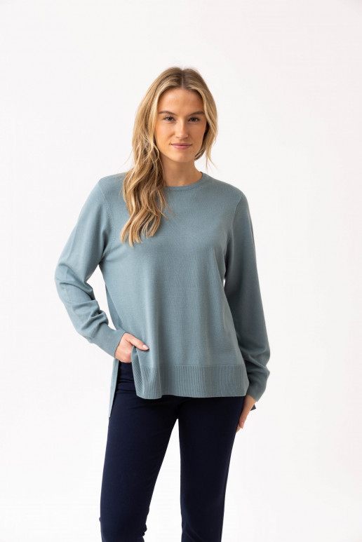 Marble 7530 Relaxed fit round neck sweater with high low hem